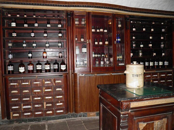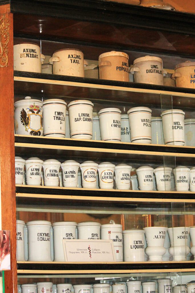 У старих аптечних підвалах відновили давні інтер’єри. Тут експонують великі дерев’яні бочки та бутлі для зберігання лікувальних медичних вин.