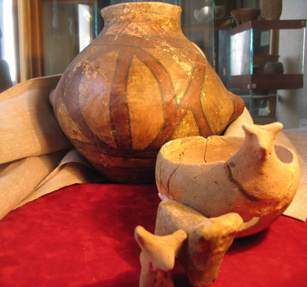4.  Розписний посуд та фрагменти керамічних скульптурок, що представляють Трипільську культуру.