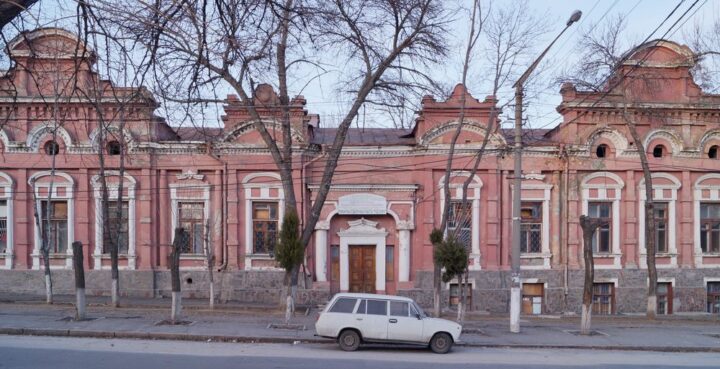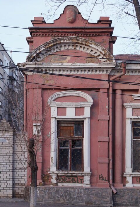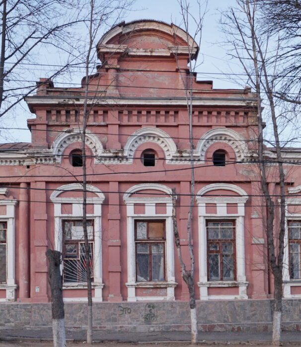 Високі вікна з напівциркульними завершеннями, балкони з кованими ґратами, ошатні карнизи — усе це створює відчуття легкої розкоші, властивої міським особнякам початку минулого століття.