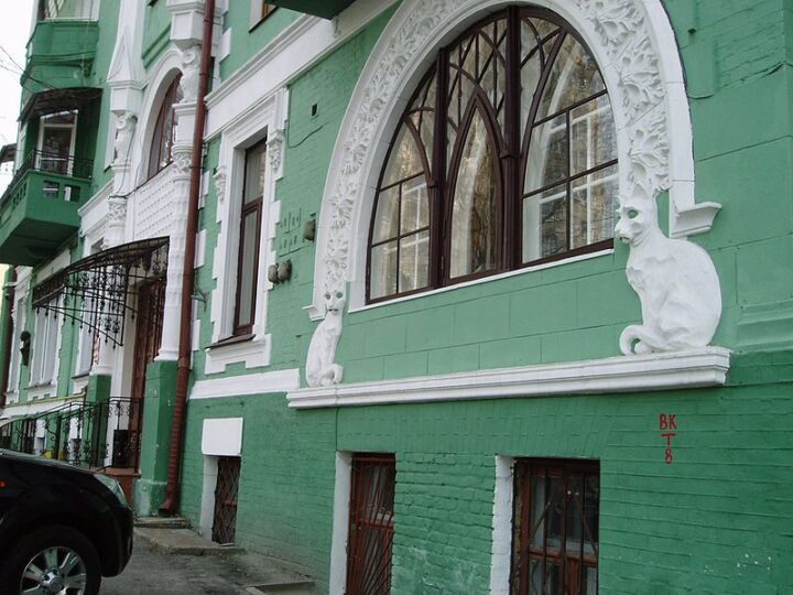 Всім поціновувачам незвичайної архітектури, варто відвідати місто Київ і помилуватися яскравою і своєрідною спорудою – «Будинком з котами». Будинок завдячує своєю назвою тому, що декор фасаду споруди прикрашений великою кількістю фігур котів. Протягом певного часу «Будинок з котами» мав також назву – «Замок Кощія».