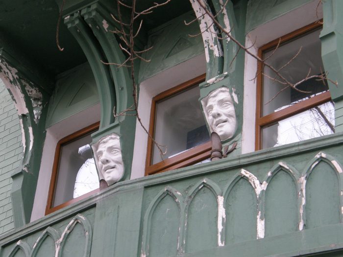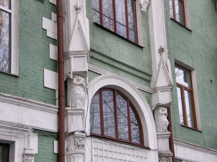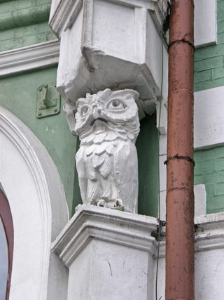 Кияни надали свій символічний сенс фігурам птахів і тварин, що зображені на будинку, так сови символізують мудрість, а фігури кішок під вікном захищають мешканців будинку від злих намірів химери, фігура якої вінчає собою скульптурну композицію будинку.