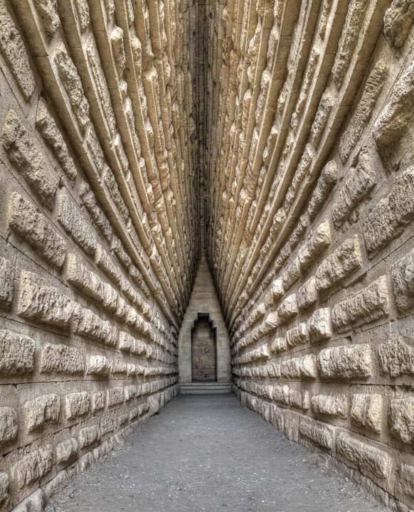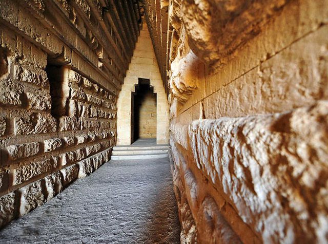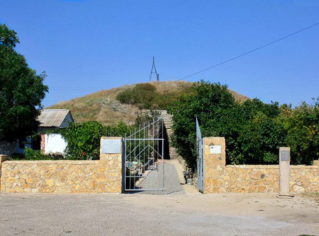 У 1837 році під час розкопок неподалік від Керчі в селищі Аджимушкай був виявлений Царський курган. Зовні цей стародавній пам’ятник нагадує єгипетські гробниці. Він складається з квадратної усипальниці і коридору довжиною приблизно 36 метрів. При будівництві цього кургану, греки, у своїх проектах, використовували математичні розрахунки, які створюють візуальний обман. Завдяки цьому проходячи вузьким коридором, туристам здається, що він нескінченний. Цікаве те, що камені і плити, з яких побудований коридор, укладені без скріплюючого розчину. Для уникнення пошкоджень, з зовнішнього боку , на стіни наносилися шари водоростей і глини.