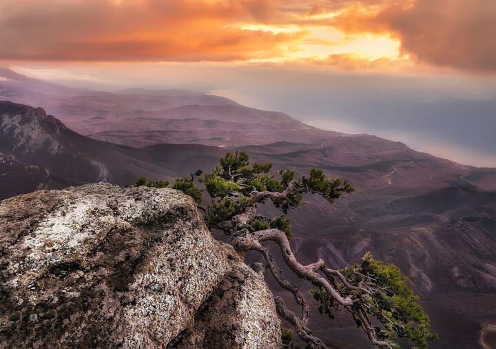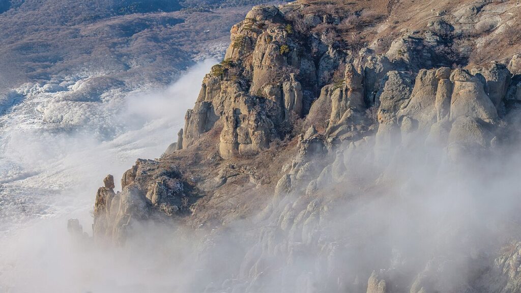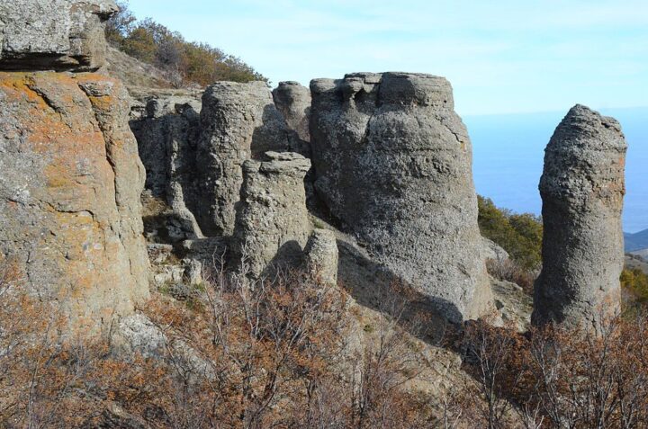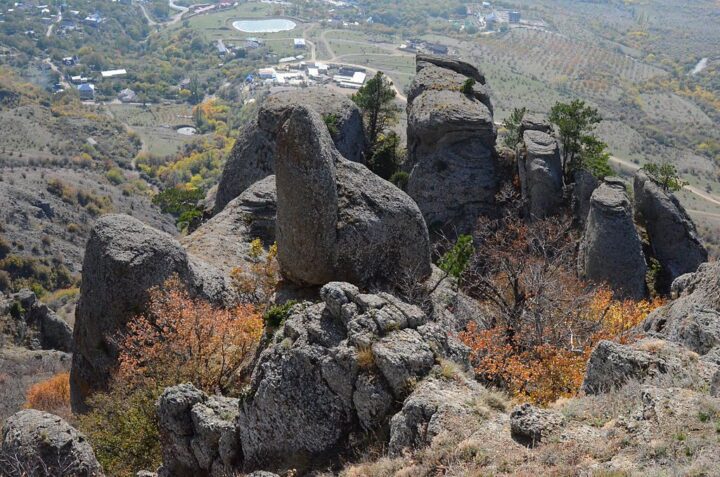 Гірський масив Демерджі розташований на Кримському півострові в 10 кілометрах від Алушти в районі села Лучисте. Історична назва масиву – Демірджі-яйла, яка перекладається як «коваль». Місцеві мешканці розповідають, що від сильного вітру шматки гірської породи летять униз з таким гуркотом, який нагадує удари коваля молотом по ковадлу. В давні часи гора Демерджі носила також назву Фуна, що в перекладі з давньогрецької означає «димна». Кажуть, що колір цієї таємничої гори змінюється стільки разів, скільки годин у добі.