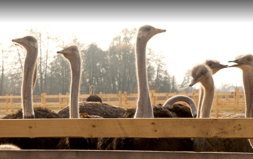 Неподалік Києва в селі Ясногородка існує ферма, де вирощують справжніх українських страусів та страусенят. Ця ферма називається – «Долина страусів». Відвідувачі ферми мають змогу побачити величезних птахів, вага яких сягає майже 200 кілограмів. Сила удару цього птаха-велетня становить 130 кг/см2. Тому не варто перевіряти розповсюджений міф про те, що переляканий страус ховає голову в пісок.