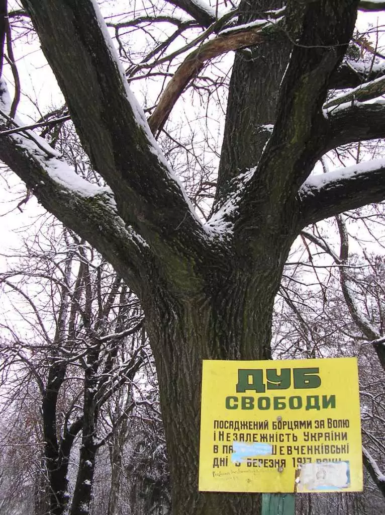 На Полтавщині в селищі Диканька знаходиться вельми популярний туристичний об’єкт – це дуб Свободи. Дерево було висаджене місцевими козаками та повстанцями-патріотами у 1917 році, на честь Тараса Григоровича Шевченка. Величний дуб стоїть посеред села неподалік пам’ятника видатного письменника Миколи Гоголя. До дерева прилаштована пам’ятна табличка з написом: «Посаджений борцями за Волю і Незалежність України в пам’ятні Шевченківські дні 9 березня 1917 року». Сторічний дуб Свободи звичайно не можна порівняти за розмірами з Кочубеївськими дубами, що також ростуть на території Диканьки, але він має досить символічне значення.