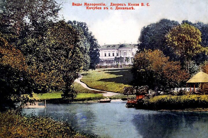 Нащадки Кочубеїв володіли Диканькою до 1917 року. Центром поселення була садиба Кочубеїв. До її композиції входили: палац, збудований наприкінці 18 століття італійським архітектором Джакомо Кваренгі, мурована церква та тріумфальна арка. Частина цієї садиби збереглась і донині. Але після проголошення Диканьки радянською владою у січні 1918 року, палац Кочубеїв було пограбовано, спалено і повністю зруйновано. Було вивезено всі архіви, бібліотеку і експонати картинної галереї.