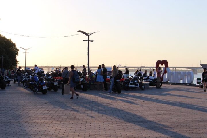Найкращим місцем для прогулянок у Дніпрі безперечно є набережна та Фестивальний причал. Тут можна: помилуватися заходом сонця; покататися річкою на кораблику; прогулятися Монастирським островом, розташованим неподалік від причалу; послухати вуличних музикантів; сфотографуватися на довжелезній сімейній лавиці.