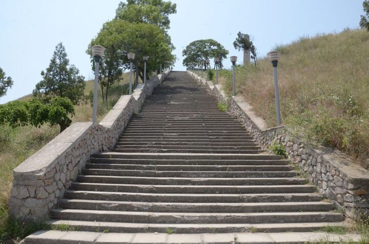 Піднятися на вершину гори туристи зможуть, скориставшись Мітридатськими сходами. Це своєрідний витвір архітектурного мистецтва, виконаний у стилі класицизму. Підйом складається з 423 сходинок. Сходи обладнані оглядовими майданчиками, терасами і лавочками у тіні дерев. Все це диво архітектури було створено архітектором Олександром Дігбі. Під час підйому до вершини Мітрідат на шляху туристам зустрінуться міфічні істоти – грифони, що охороняли древні поховання. Опинившись на вершині гори на висоті 91 метр над рівнем моря, вам відкриється прекрасний вид на керченську бухту. Це відмінне місце для проведення фотосесій. Любителі античної культури і архітектури отримають масу прекрасних емоцій.