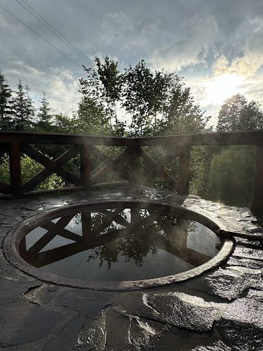 Особливої екзотичності процедурі додає те, що чан з гарячою водою стоїть просто неба. Особливо це відчувається в прохолодну пору року. Ви можете спокійно насолоджуватися гарячими водними процедурами, в той час як на вулиці мороз і пролітають сніжинки. Чан розрахований на посиденьки невеликою компанію, адже може вміщувати в собі одночасно до шести осіб.