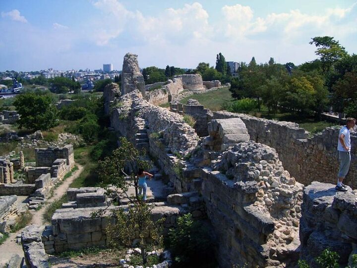 У місті Севастополі на Кримському півострові знаходиться руїни стародавнього городища Херсонес. «Херсонес» в перекладі з грецької означає «півострів». Місто розташовувалось поміж двох бухт на півострові. Півострів заселяло войовниче плем’я таврів, звідси і пішла назва «Таврійський» чи «розташований на території таврів». Стародавнє грецьке місто Херсонес Таврійський виникло на узбережжі Чорного моря, у V ст. до н.е. Місто було розплановано за схемами, поширеними на той час римськими та грецькими світами та було огороджене могутніми оборонними стінами. На території сучасного заповідника до наших днів збереглося багато стародавніх споруд, таких як: римська цитадель, елліністичний театр, житлові квартали, вулиці, середньовічні християнські храми, обладнання для засолювання риби, гончарні майстерні,колодязі предмети побуту та багато іншого.
