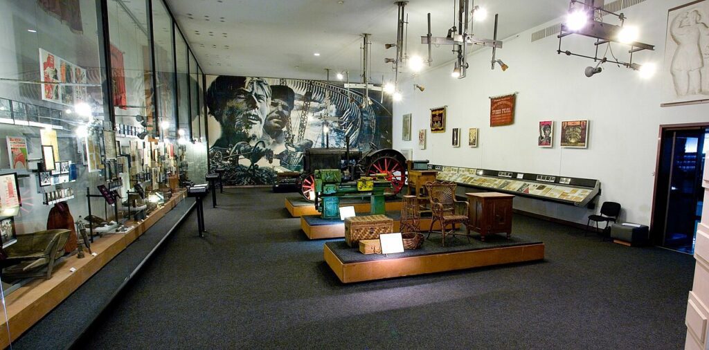 Ще одна зала зберігає речі епохи індустріалізації на Катеринославщині: лопати, спеціальні верстати, документи.