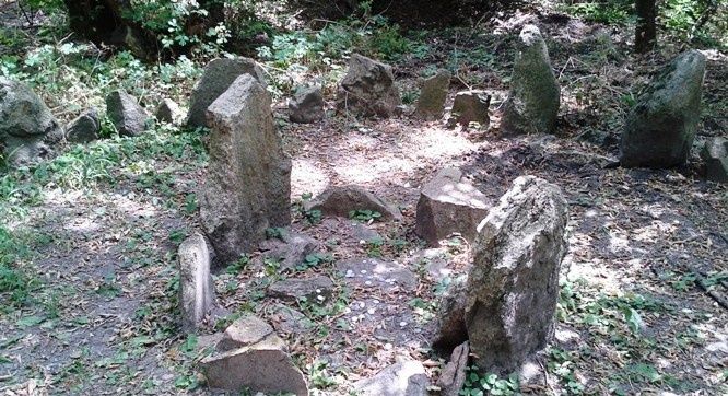 На Запоріжжі є легендарний острів Хортиця, який славиться історичними пам’ятками, курганами і кам’яним святилищем. Якщо прогулятися на північ острова, то можна побачити великі камені, встановлені у формі яйця. Кам’яну закладку відносять до бронзової епохи. Вона була частиною ритуального комплексу. Ця знахідка була знайдена і ретельно вивчена у 1992 році. Всі камені мають овальну форму і вирізьблені з цілісного граніту. Розміри овалу становлять 3,5 на 2,8 метра. Вузький край споруди вказує на схід, а у внутрішній частині відсутні камені.