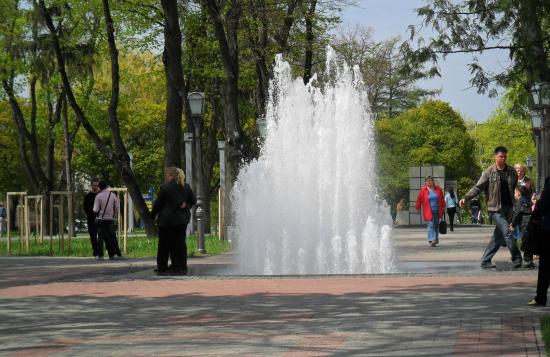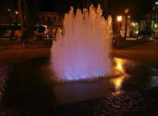 Урочисте відкриття контактного фонтану у Сумах відбулося 1 вересня 2012 року. В цей же день в місті відбувся ще один урочистий захід, був відкритий пам’ятник «Веселий сумчанин». Візуальний вигляд фонтану досить відрізняється від звичайного. У цього фонтану відсутня чаша, а струмені води прямо з – під асфальту б’ють на 2,5 метра в висоту. Цей фонтан часто називають плоским або гейзером.