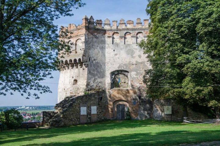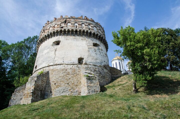 Туристи, що перебувають у підніжжя вежі, можуть добре роздивитися куполи монастиря у Межирічі.
