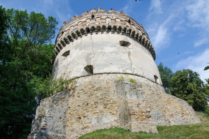 Кругла вежа скоріше за все була побудована у середині 14 століття. Споруда зведена в стилі середньовічної архітектури з ренесансною короною зубчиків. В літературі ця вежа згадується, як споруда збудована в кінці 16 століття. Та швидше – це дата надбудови верхнього ренесансного ярусу башти.