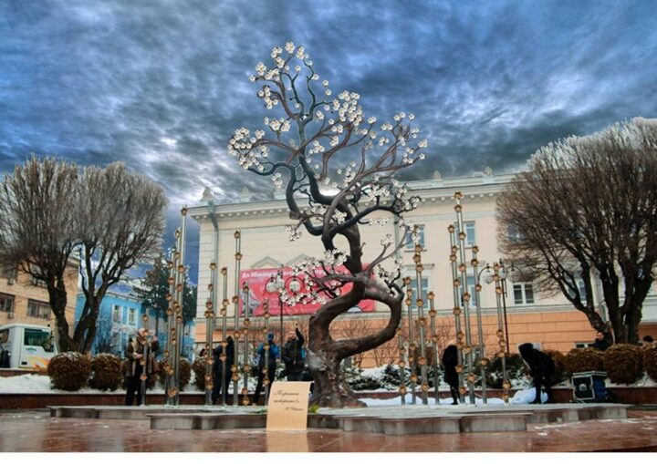 Перейменування Театральної площі (Париж) на майдан Небесної Сотні відбулося у 2014 році, за рішенням міської влади. Саме на цій площі збиралися перші активісти «Євромайдану» в період Революції Гідності. В 2018 році на майдані був встановлений монумент «Дерево свободи», який є символом пам’яті про загиблих у період Революції Гідності. Під час відкриття бронзового монументу, білу завісу знімали рідні померлих Героїв.