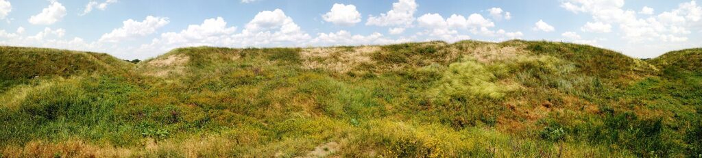 На південному сході Дніпропетровської області, де річка Оріль ніжно омиває береги, лежить село Межиріч — тихе й затишне, ніби сховане від часу. Саме тут, за кілька кілометрів від села, серед безкраїх полів і плавнів, розкинувся один із найзагадковіших об’єктів української археології — Мавринський майдан. Він з’являється раптово: серед рівного степу здіймається система земляних валів, схожа то на древній амфітеатр, то на слід від чогось космічного.