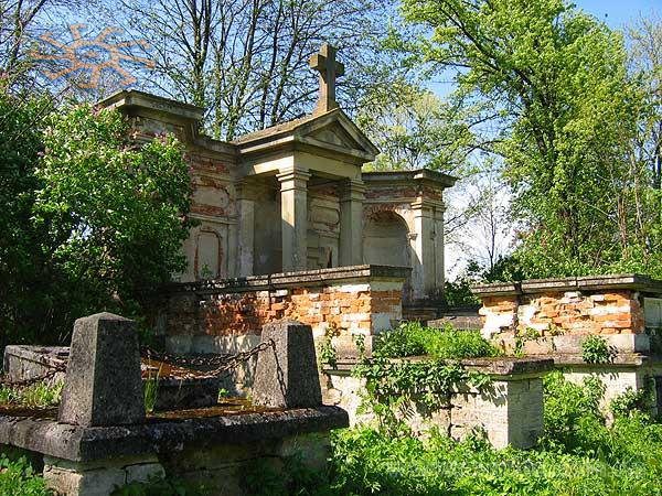 Архітектурний стиль мавзолею належить до класицизму. Споруда має досить значні розміри, що робить її легко помітною серед інших поховань. Конструкція складається з центральної частини та двох бічних крил, прикрашених арками, в глибині яких розташовані пам’ятники. Вхід оздоблений портиком з колонами, а верхівку увінчує великий кам’яний хрест. Від замурованого входу по обидва боки меморіальної дошки спускаються кам’яні сходи, що додає величності загальному вигляду споруди.