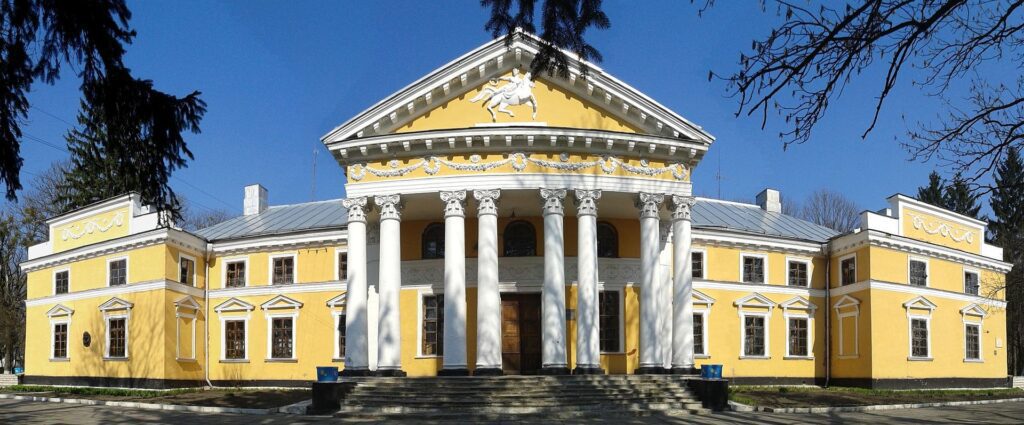 За палаців був штучно зроблений чудовий парк, який плавно переходив в ліс. Штучно викопаний широкий яр був з’єднаний аркоподібним містком, неподалік був збудований “мисливський павільйон”, який протягом багатьох років слугував помешканням сімейному лікарю Ганських Адольфу Кноте. В глибині парку розміщувалася оранжерея, поруч росло багато рідкісних дерев. На межі де парк переходив в ліс була птахоферма. Сам ліс населяли лані, косулі та вепрі.