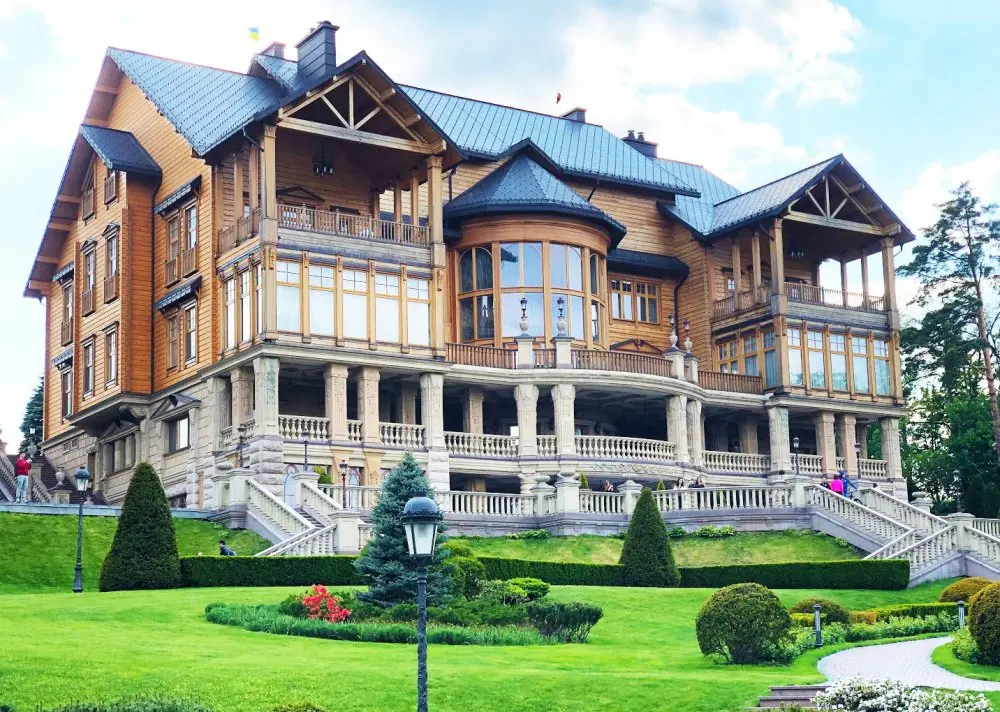 The President of Ukraine Viktor Yanukovych chose it as his residence after he won the 2010 Ukrainian presidential election.[8] Its current ownership is contested.[8] In 2009 Yanukovych claimed to have full ownership.[1] He has since not revealed the price he paid for the property, instead calling it a “very serious price”.[22] Serhiy Leshchenko, of Ukrayinska Pravda, has claimed Yanukovych owned more of the estate than he claimed, and that he managed to do so through a complex ownership structure via a network of international holding companies that ultimately comes back to a firm called Tantalit, run by a lawyer close to the Yanukovych family, Pavlo Lytovchenko.[8] The estate’s level of luxury and the reconstruction of a road to it has spawned controversy within Ukraine.[3][8] During the 2014 riots, hundreds of Ukrainians went to visit this luxurious palace and park for free after the President had fled to the East on 23 February 2014.