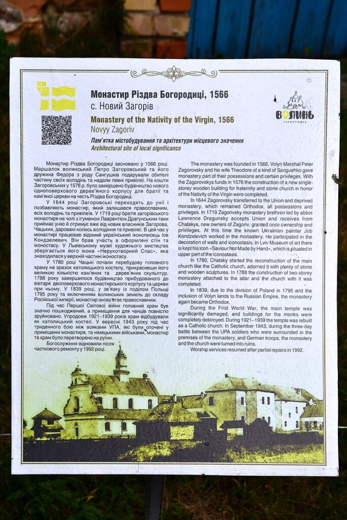 На тихих луках між хвилястими пагорбами Волині, де час ніби застиг у щемкій молитві, височіє старовинна святиня — Монастир Різдва Пресвятої Богородиці в селі Новий Загорів. Зведений ще в середині XVII століття, цей монастир стоїть на межі світу земного й духовного, як мовчазний свідок козацьких походів, польсько-литовських війн, імперських зазіхань та повстанських подвигів.