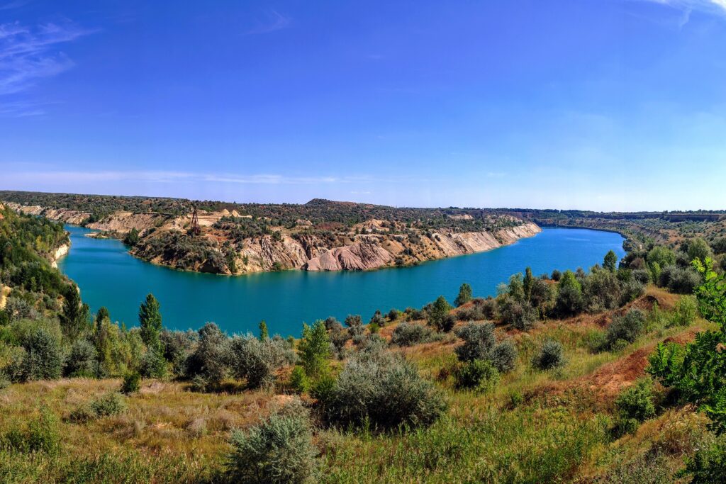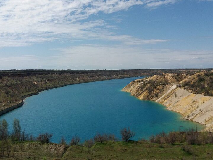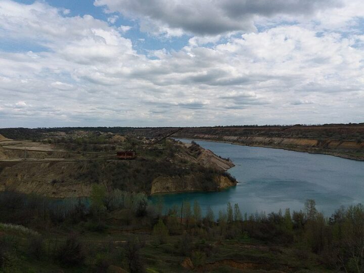 Поклади вугілля в Україні здебільшого зосереджені у Дніпровському буровугільному басейні. Саме тут розташоване місто Олександрія. Так як горючі осадові породи рослинного походження залягають досить не глибоко під землею, тому видобуток вугілля відбувається кар’єрним способом. Подібні кар’єри у вугільній промисловості мають назву – «розрізи». Розміри деяких кар’єрів досить великі. Видобуте тут вугілля використовують у вигляді брикету, здебільшого у побуті. «Олександріявугілля» – це найбільше підприємство Дніпровського буровугільного басейну. Один із розрізів підпорядковується підприємству – Морозівський. Зараз цей розріз не експлуатується. Покинута гігантська видобувна техніка залишилась на місці розробок родовища. Розріз помалу затоплюється і частина техніки вже зникла під водою. Вода в кар’єрі піднялась вже більше, ніж на двадцять метрів. Водойма має бірюзовий колір води, це свідчить на велику глибину озера та його чистоту.