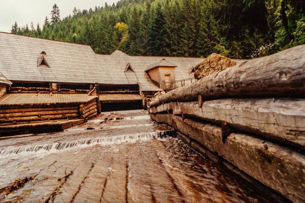 А ще музей зберігає дух епохи: тут легко уявити, як хлюпоче вода, як скриплять балки під тягарем колод і як карпатські чоловіки в вишиванках та капелюхах вправно керують цілим «флотом» деревини.