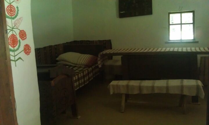 Експонати Гуцульщини: справжня гуцульська ґражда (садиба) з верховинської Криворівні.