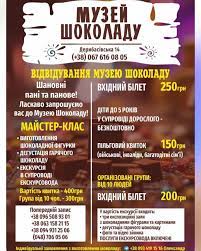 - Пізнавальні екскурсії з розповідями про історію шоколаду, його шлях від какао-бобів до ласощів на нашому столі.