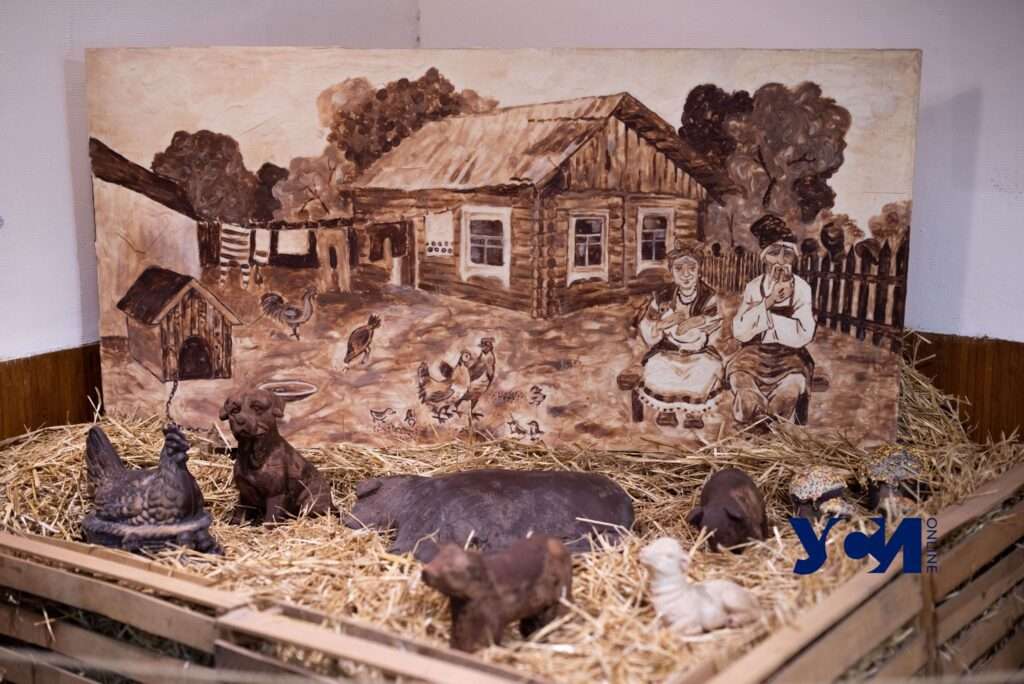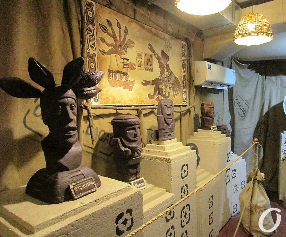 Тут можна побачити копії відомих архітектурних пам’яток (наприклад, шоколадну версію Оперного театру), фігури улюблених мультперсонажів, квіткові композиції, тварин та навіть сцени з історії Одеси — усе зроблено з різних сортів шоколаду: чорного, молочного, білого.