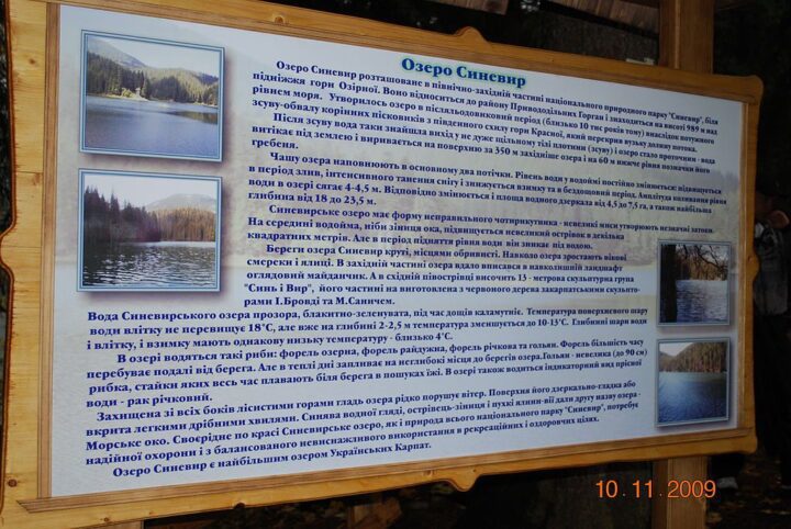 Найбільше гірське озеро в Україні знаходиться у Закарпатській області в національному природному парку «Синевир». Озеро Синевир – це справжня перлина Карпат, що утворилась близько 10 тисяч років тому внаслідок потужного зсуву гірських порід. Місцеві жителі називають це озеро «морським оком» Карпатських гір. Озеро досить глибоке, максимальна відстань до дна – близько 24 метрів. Та згідно розповідей старожилів, ще досі нікому не вдалось виміряти точну глибину водойми. Синевир розташований на висоті близько 1000 метрів над рівнем моря, тому вода тут холодна навіть улітку.