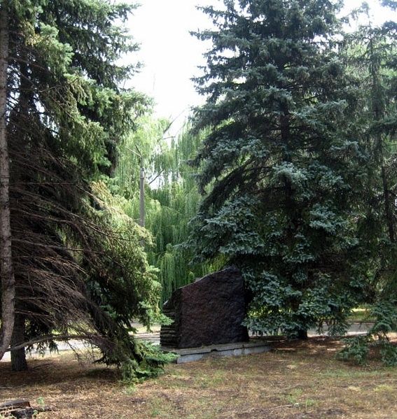 «На цьому місці у 1941–1943 роках фашистами було розстріляно мирних жителів міста Дружківка. Вічна пам’ять загиблим.»