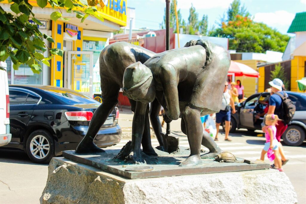 На узбережжі Азовського моря в курортному місті Бердянську встановлений неймовірно цікавий пам’ятник – Дачникам. Пам’ятник має вигляд скульптурної композиції жінки та чоловіка з лопатами в руках, які захоплено збирають колорадських жуків. На постаменті фігури стоять в характерній для фізичної роботи позі. Під ногами у трудівників знаходиться непристойно великих розмірів колорадський жук та табличка з написом: «Бердянці! Прогодуймо себе самі!». Безперечно, це – найцікавіший монумент міста, насамперед своїм цікавим оформленням.