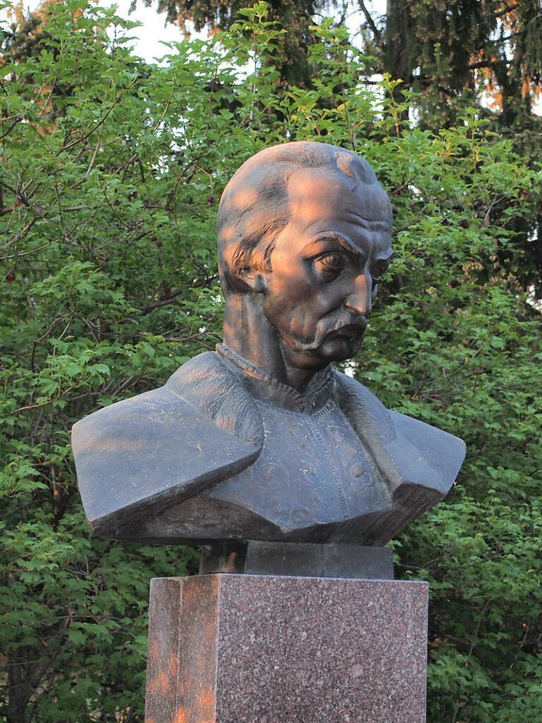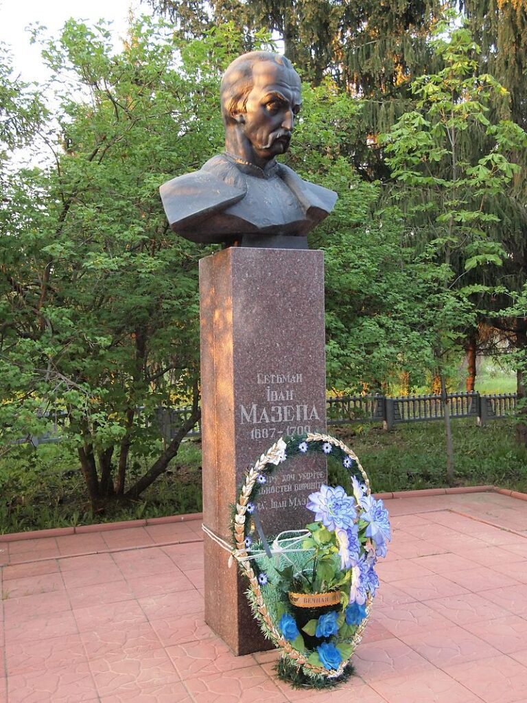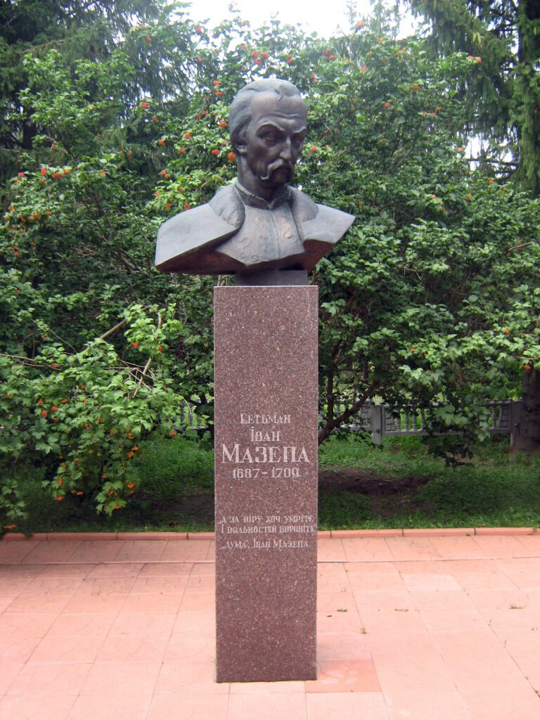 6 листопада 1994 року у невеличкому ялинковому сквері було встановлено погруддя Івана Мазепи. Зведення пам’ятника відбувалося під егідою Міжнародного освітнього фонду імені Ярослава Мудрого. Ініціатором та спонсором став український меценат Марьян Коць, який наразі проживає неподалік Нью-Йорка. Автором пам’ятника став скульптор Е. Горбань. На п’єдесталі монументу висічені роки правління гетьмана: з 1687 по 1709 роки. А також рядки з одної з дум Івана Мазепи: «А за віру хоч помріть і вольностей бороніте».