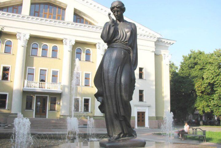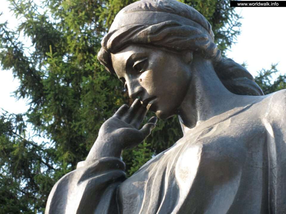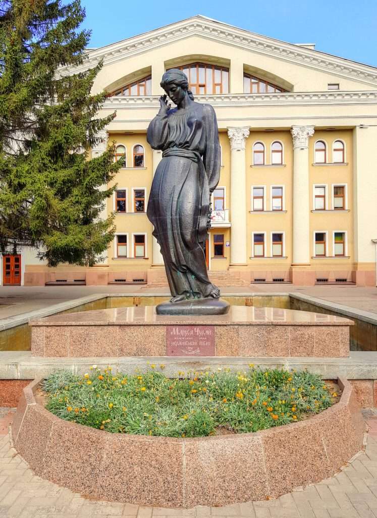 Пам’ятник має вигляд молодої дівчини, відомої поетеси 17 століття Марусі Чурай. Ця видатна жінка мала великий талант та володіла надзвичайно красивим голосом, тому і стала символом української народної пісні.