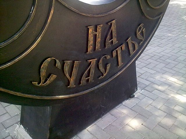 Диво – монумент «На щастя» розташований неподалік не менше цікавого і оригінального Крісла бажань. Обидва креативних пам’ятника розміщені в зоні відпочинку. Місце для встановлення пам’ятника було вибрано так, щоб кожен відпочиваючий, який приходить розслабитися в міську зону відпочинку, міг постояти і загадати бажання біля підкови.
