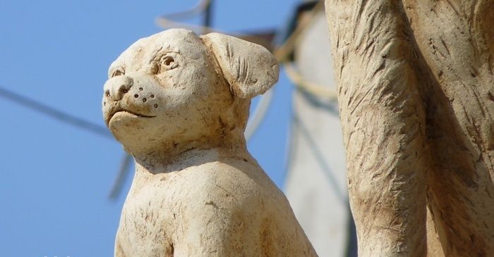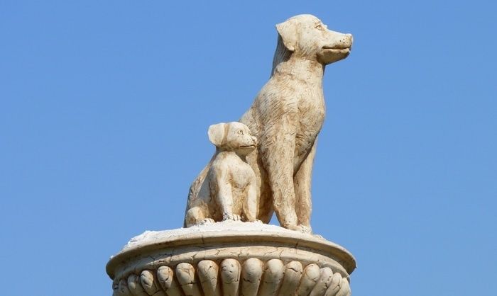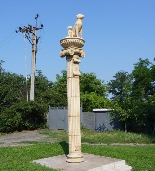 На Запоріжжі в курортному місті Бердянськ є красивий монумент – пам’ятник «Собача балка». Скульптура має вигляд колони з двома собаками на вершині – великим та малим. Собаки сидять, спрямовуючи свій погляд в далечінь, складається враження, що тварини виглядають свого господаря чи непроханого гостя. Назва монументу походить від однойменного мікрорайону, на території якого розміщений пам’ятник. «Собача балка» була відкрита 17 вересня 2010 року. Урочистим відкриттям займався тогочасний мер міста. В той же період часу місцева влада встановила ще три подібні пам’ятники. Ці пам’ятники мали вигляд колон з фігурами, які відображають назви поселень-мікрорайонів.