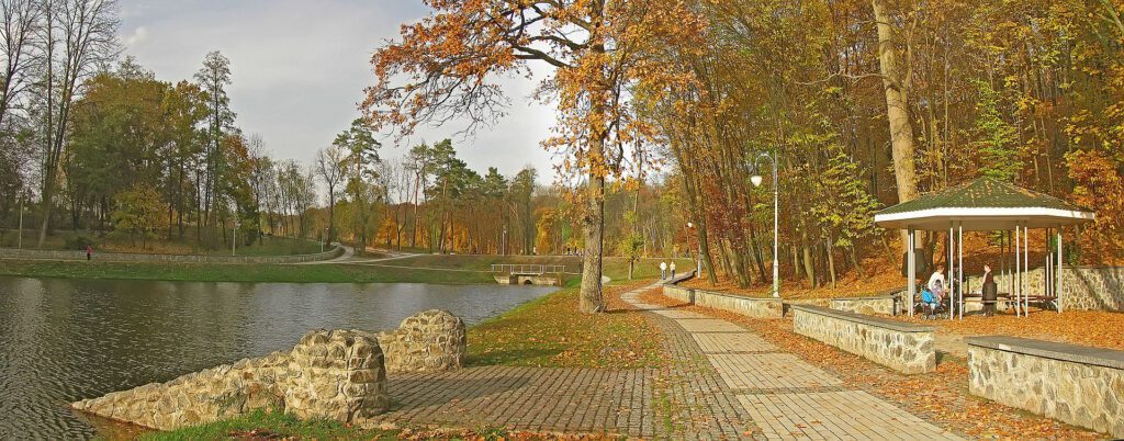 На території Голосіївського району Києва розкинувся мальовничий парк Феофанія. Феофанія – це один з найкращих парків України. Парк розташований у межах міста, та це не заважає відпочивати у ньому і душею, і тілом. Територія парку сягає 150 гектарів. Феофанія – це одне з найпопулярніших місць відпочинку киян та гостей столиці. Парк «Феофанія» – це парк-пам’ятка. Прогулюючись територією комплексу можна набратися сил, подихати свіжим повітрям та добре відпочити. У вихідні дні найбільший наплив відвідувачів. Парк користується попитом у молодят, які приїжджають сюди, щоб зробити гарні фотографії. У парку гармонійно поєднано прекрасний природний та сучасний штучний дизайнерський ландшафт. На території Феофанії висаджено багато унікальних рослин, що додає ефектного вигляду на фоні розташованого поруч Свято – Пантелеймонівського монастиря. Палладинські ставки відіграють одну з головних ролей. П’ять ставків слугують домом для місцевих качок, на одному з них знаходиться альтанка, що стала візитною карточкою Феофанії. Для малечі тут є дитячий майданчик. Відвідувачі мають можливість відпочити на зручних лавках та в альтанках. При вході до парку працює пункт прокату велосипедів. За невисоку ціну можна орендувати велосипед, для того щоб роздивитися парк з усіх боків. Також у парку проводять різноманітні заходи та святкування, такі як: Івана Купала, Свято весни, фестиваль танцю, фестиваль дитячої творчості та багато іншого.