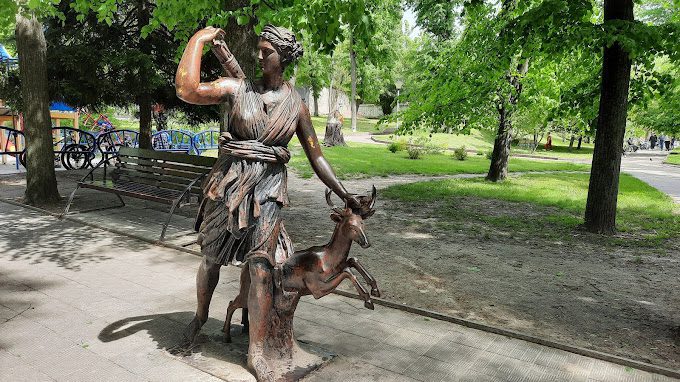 Статуя богині Артеміди. Ця давня статуя ще пам’ятає про графські часи. Статую богині мисливства встановили ще за часів життя барона Шодуара. Скульптура значно постраждала в часи війни, але нині її відреставрували і повернули на галявину житомирського парку. Неподалік, біля дитячого майданчика, гостей зустрічає ціла галерея скульптур казкових персонажів.