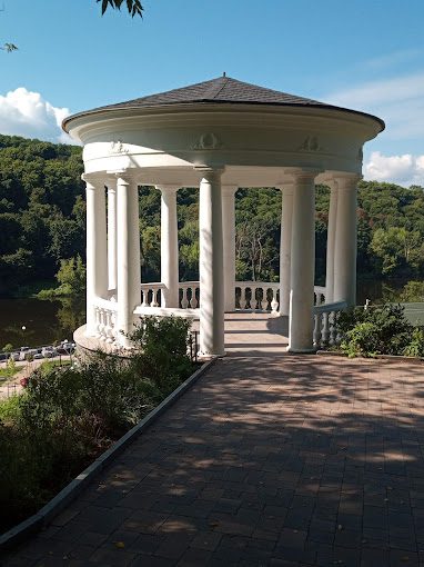 Біла колонада в тосканському стилі. Ця унікальна споруда зустрічає своїх відвідувачів на вході в міський парк Житомира. Її унікальність полягає в тому, що на відміну від усіх інших колонад світу, вона має непарну кількість колон. Містяни пишаються цією особливістю і полюбляють влаштовувати фотосесії біля колонади та каскаду фонтанів, що починається відразу від входу. Неподалік розташовані оглядові майданчики, з якого відкривається прекрасний вид на річку Тетерів.