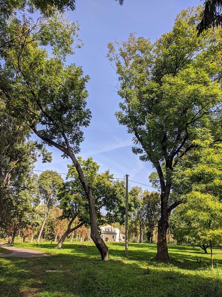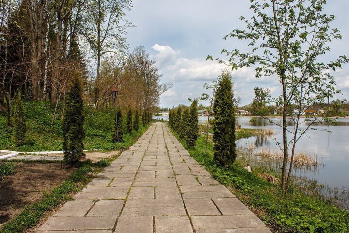 Центральна алея веде до фонтану — улюбленого місця фото на згадку. Доріжки викладені бруківкою, а лавочки закликають посидіти у тіні дерев з книгою чи у компанії друзів.