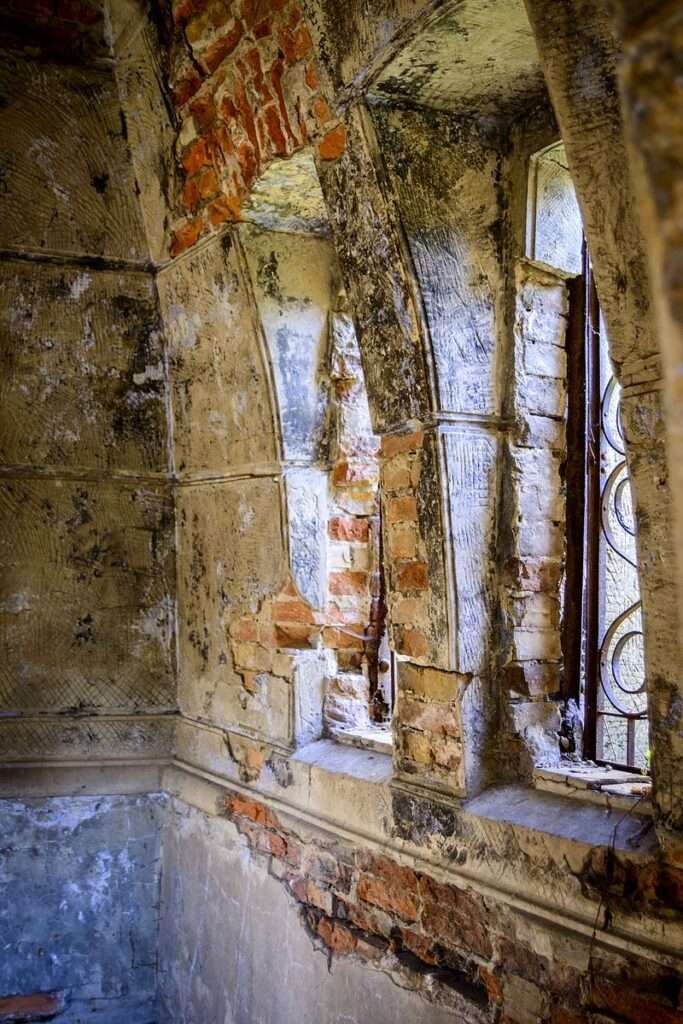 Стіни усипальниці були зроблені за єгипетськими традиціями – силікатна цегла заливалася шаром цементу, що збільшувало їх товщину до 30–35 сантиметрів. Вони були розписані цитатами з Біблії і прикрашені єгипетськими фресками. Біля входу стояла статуя богині Ізіди, яку поміщик привіз з Єгипту. Всередині внутрішнього приміщення піраміди стояв язичницький вівтар із дерев’яним хрестом, на якому зображувався розп’ятий Ісус Христос. На горі усипальниці також знаходився хрест. В цьому родовому склепі були поховані члени родини Закревських.