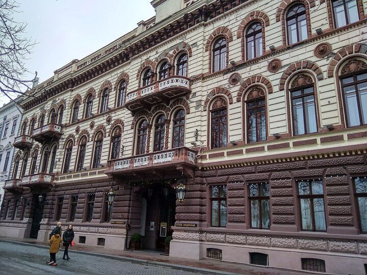 Далі на Приморському бульварі розташовується готель «Лондонський», побудований ще у 1828 році. Найвідомішими його відвідувачами були: Айседора Дункан, Антон Чехов, Максим Горький, Монтсеррат Кабальє та інші. У приміщенні колишнього маєтку Наришкіних, що стоїть біля готелю, наразі знаходиться Палац моряків.
