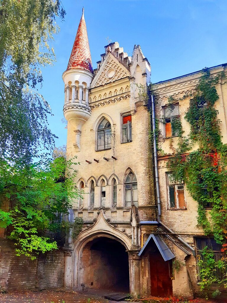В місті Києві на вулиці Ярославів Вал розташувалась будівля, що має вигляд казкового замку – це Садиба барона Штейнгеля (інша назва – будинок Підгорського). Споруда була збудована в кінці 19 століття за проектом молодого і талановитого архітектора Миколи Добачевського, на замовлення поміщика Михайла Підгорського. Будівля оздоблена вежею з гострим готичним шпилем, стінами з зубчастими краями, вузькими стрілчастими вікнами та ажурними решітками – все це додає особливого шику стародавньому особняку. Над входом в арку знаходяться дві міфічні істоти, які ніби підтримують вежу. Перед входом у замок на мармуровій підлозі мозаїкою викладено напис «SALVE» (у перекладі з латинської мови – «привіт»).