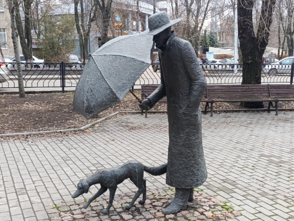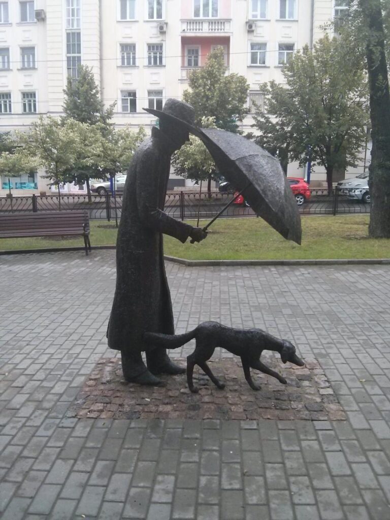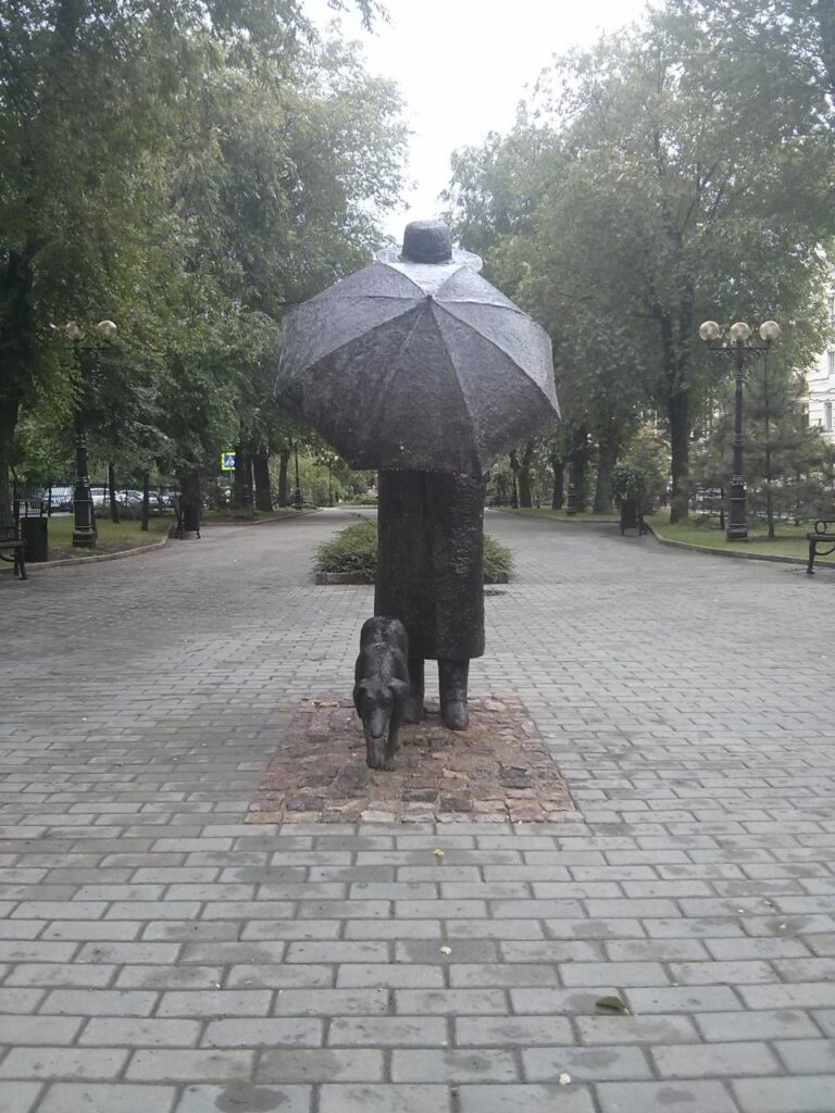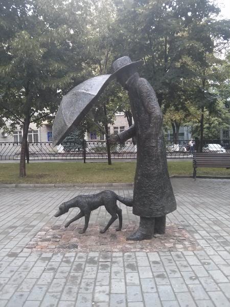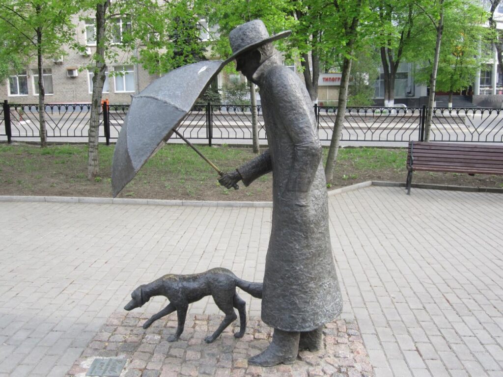 В місті Донецьку на бульварі Шевченка неподалік будівлі ОДА знаходиться унікальна скульптура «Друг». Пам’ятник встановили 10 червня 2014 року, в розпал збройного конфлікту на Донбасі. Скульптура «Друг» зображає людину в капелюсі і плащі, який тримає парасольку над собакою.