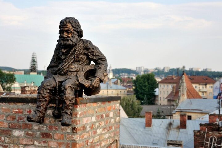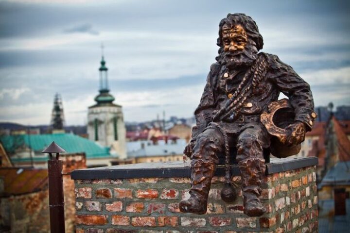 У самому серці Львова, на даху будинку №48 на вулиці Краківській, оселився один із найвідоміших сучасних міських символів — скульптура Сажотруса. Це не просто художній об’єкт, а уособлення давньої львівської легенди, добра, щастя і старовинної міської професії, яка сьогодні викликає теплі емоції та ностальгію.