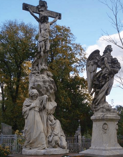По сусідству зі скульптурою «Янгол з дитиною» стоїть скульптура «Голгофа». Цю скульптуру Харитоненко замовив у Круазі пізніше.