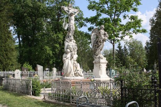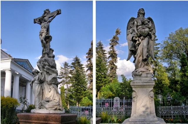 Скульптури «Янгол з дитиною» і «Голгофа» знаходяться на міському центральному кладовищі у Сумах на вулиці 20-річчя Перемоги. Розташовуються вони на центральній алеї одразу ж за церквою Петра і Павла. Поряд знаходиться зупинка громадського транспорту «Міськлікарня № 1».