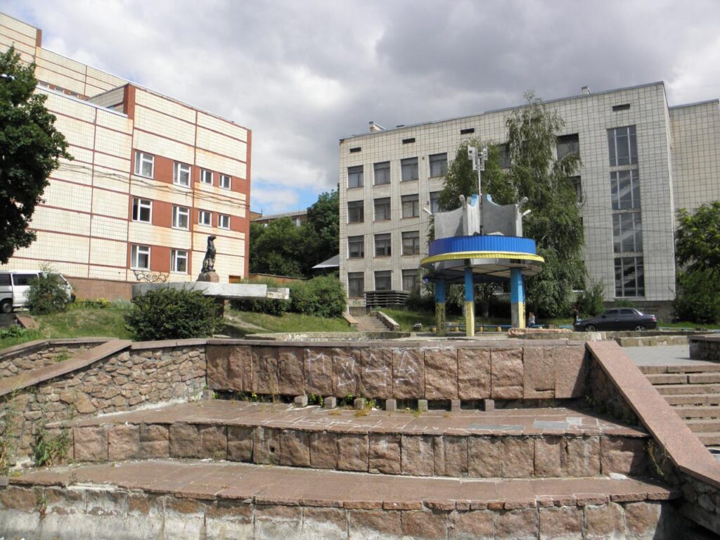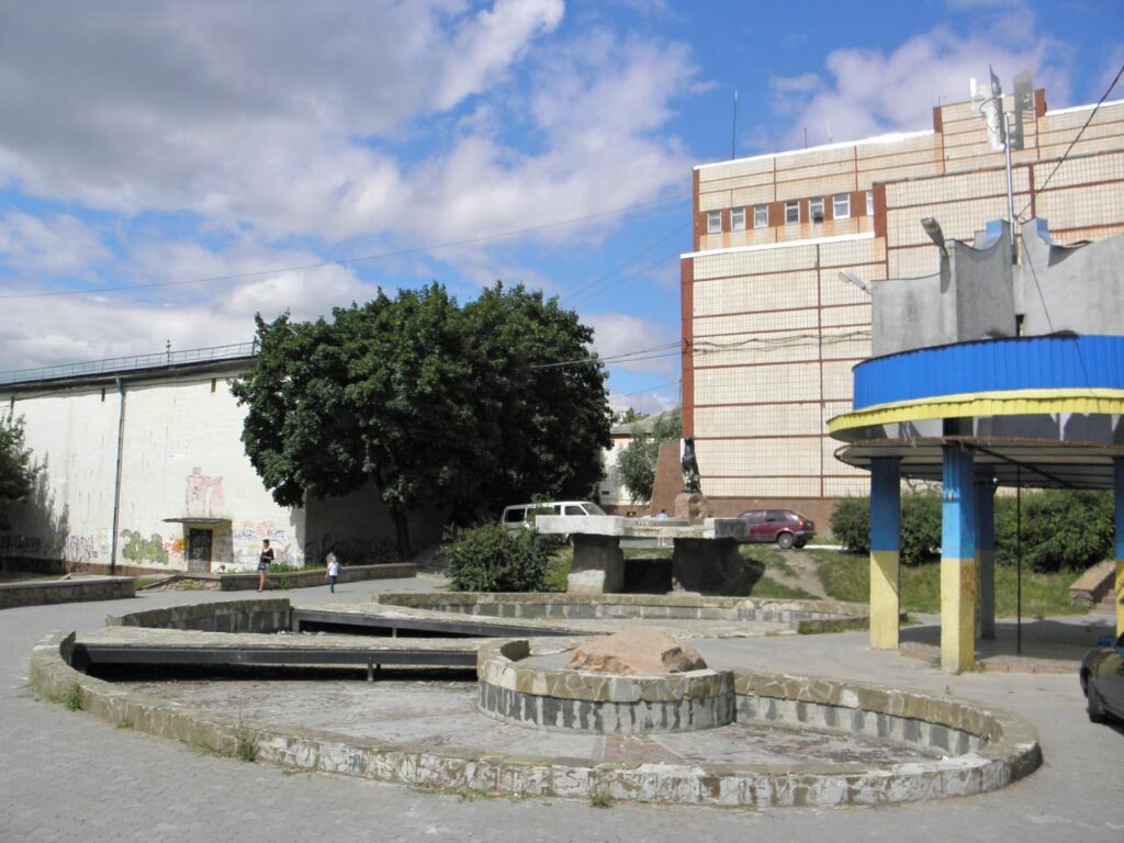 Сквер було створено у 1987 році. Його центральною окрасою стала скульптурна композиція, авторства скульптора Григорія Савченка та архітектора Івана Мединського. Композиція символізувала щасливу родину: гордий пантера-батько на висоті охороняє пантеру-матір із дитинчатами. Поруч було облаштовано водоспад і систему басейнів, що гармонійно доповнювали загальний вигляд скверу.