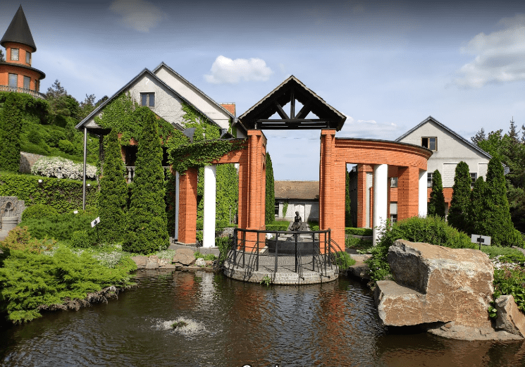 У 1996 році місцевий меценат Іван Суслов розпочав будівництво ландшафтного парку та храму на місці колишнього звалища. Для втілення своєї мети, меценату довелося вивезти п’яти сотень КАМАЗів сміття та розчистити річку. Після цього була побудована гребля та був відреставрований старовинний водяний млин, який зараз слугує в якості електростанції. Спеціальний місток при в’їзді в Буки, який наполовину затоплений – це особлива задумка, для того, щоб з коліс автомобілів змивався бруд. Перлиною парку є фонтан, що стояв у центрі Майдана Незалежності. Його реконструкція і встановлення зайняло декілька років. Наразі фонтан працює не регулярно. На території парку є парковка для автомобілів, крамничка з сувенірними виробами, та кафе, де можна поїсти та відпочити. Вхід в ландшафтний парк та храмовий комплекс безкоштовний. Також за окрему плату можна відвідати міні – зоопарк, казкову галявину чи покататися на катамаранах. Кращий час для відвідування парку – вихідні дні до об обіду, так як пізніше в парку збирається дуже багато відвідувачів та бажаючих зробити весільну фотосесію. Приблизний час прогулянки парком складає 1 – 1,5 години.
